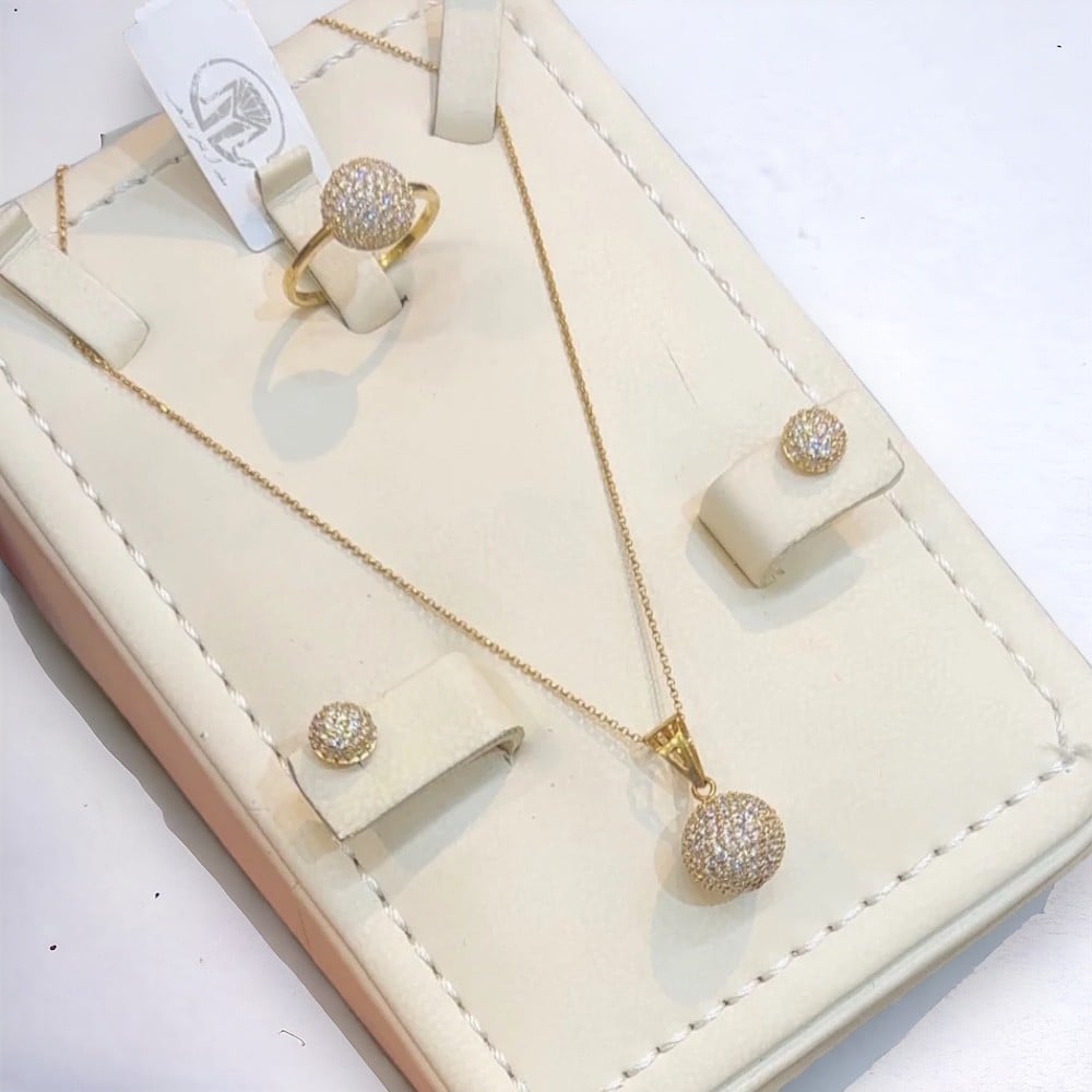 - نص طقم ذهب ، يتميز الطقم بتصميمات فريدة وجذابة مزينة بالأحجار الكريمة المختلفة، حيث تضفي لمسة من الجمال والأناقة على إطلالة السيدة التي ترتديه، ما يجعله مناسب للاستخدام في المناسبات المختلفة سواء الرسمية أو غير الرسمية.